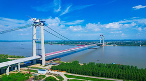 7月26日9时,湖北省第40座、武汉市第12座长江大桥——双柳长江大桥精准合龙,大桥进入附属设施施工阶段。 双柳长江大桥由湖北交投集团投资建设,中交二航局、中铁大桥局参与施工,是国家高速路网武汉都市圈环线的重要组成部分和湖北省“十四五”规划中的重点建设项目,工程全长35.043公里,设计时速120公里,连接武汉新洲和鄂州华容,是目前长江上最宽的钢箱梁悬索桥。 双柳长江大桥雄踞武汉“东大门”,具有“主塔
