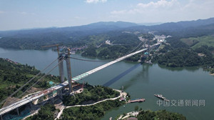 图为合龙后的洞庭溪沅水特大桥。 8月3日,随着最后一段重达238.6吨的标准节梁被缓缓提升,湖南省在建跨径最大的悬索桥——呼北高速公路张家界至官庄段洞庭溪沅水特大桥顺利合龙,为2026年全线通车奠定坚实基础。 洞庭溪沅水特大桥全长1707米,主桥设计为跨径800米双塔单跨悬索桥。项目团队推行“设计—制造—采购—建造”的生产贯通模式,采用智能化施工技术推进大桥绿色建造。 张官高速公路全长82.3公里,设计时速100